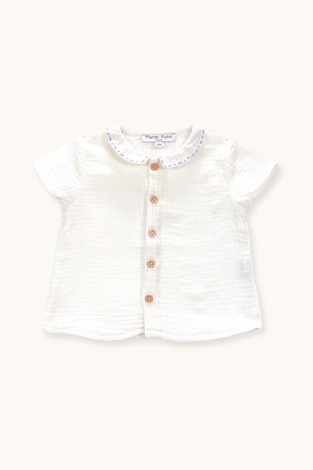 Double gauze baby shirt with hand-embroidered collar