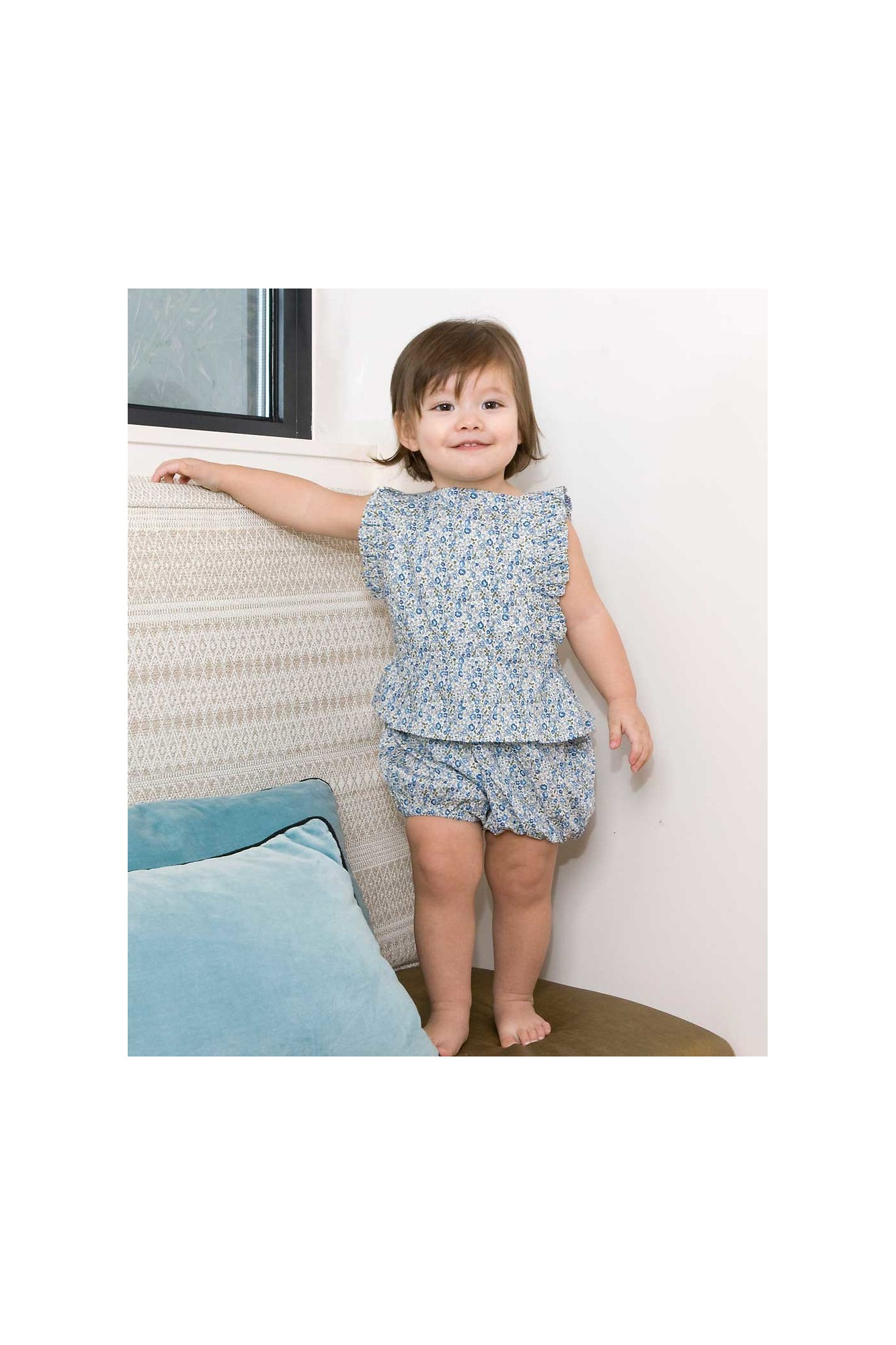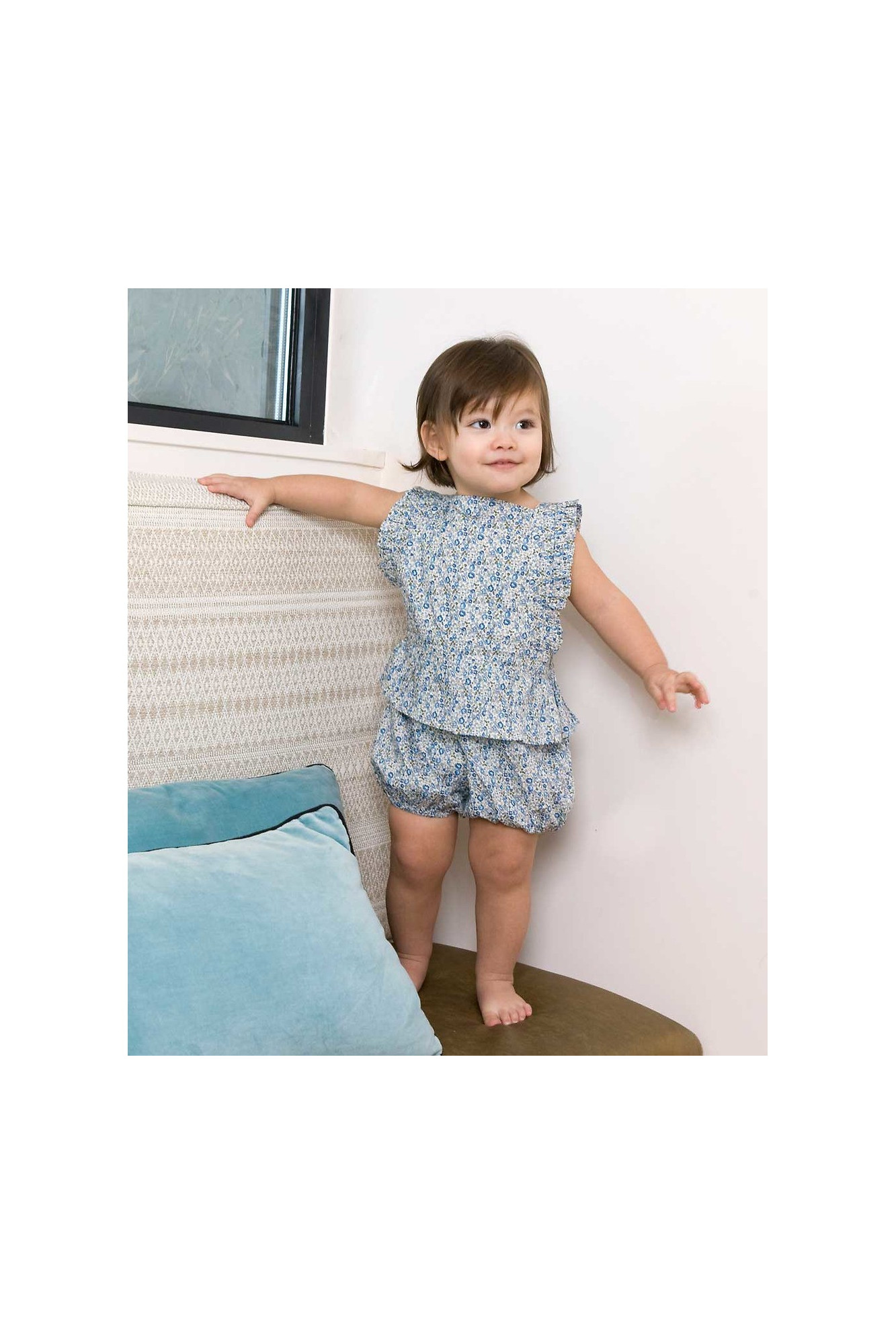 Cette barboteuse peut se porter avec une blouse ou à même la peau lorsqu'il fait plus chaud.