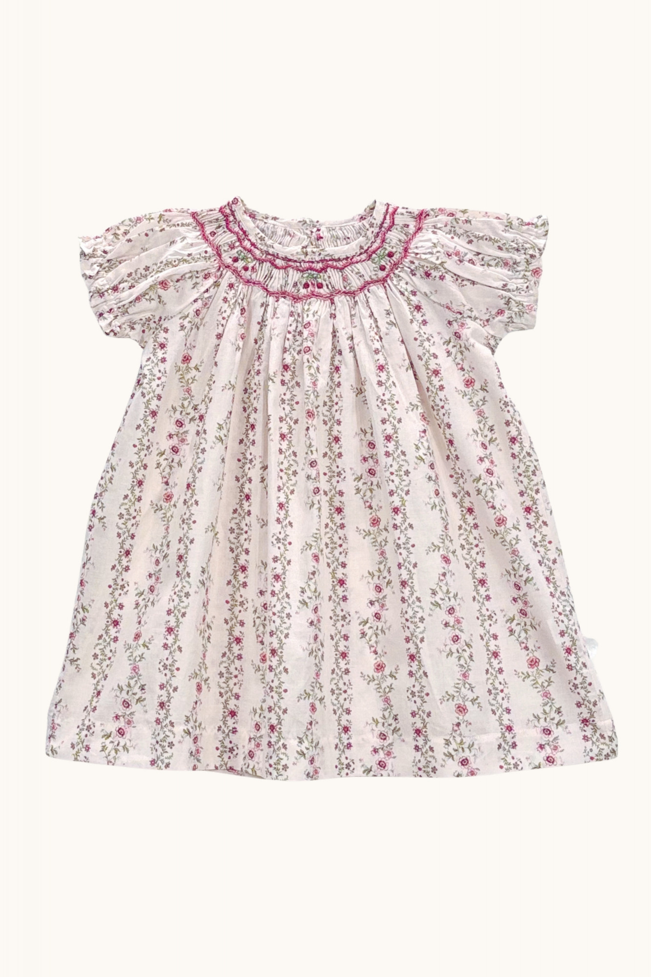 • Boutonnée intégralement au dos jusqu'au 2 ans avec de jolis boutons de nacre